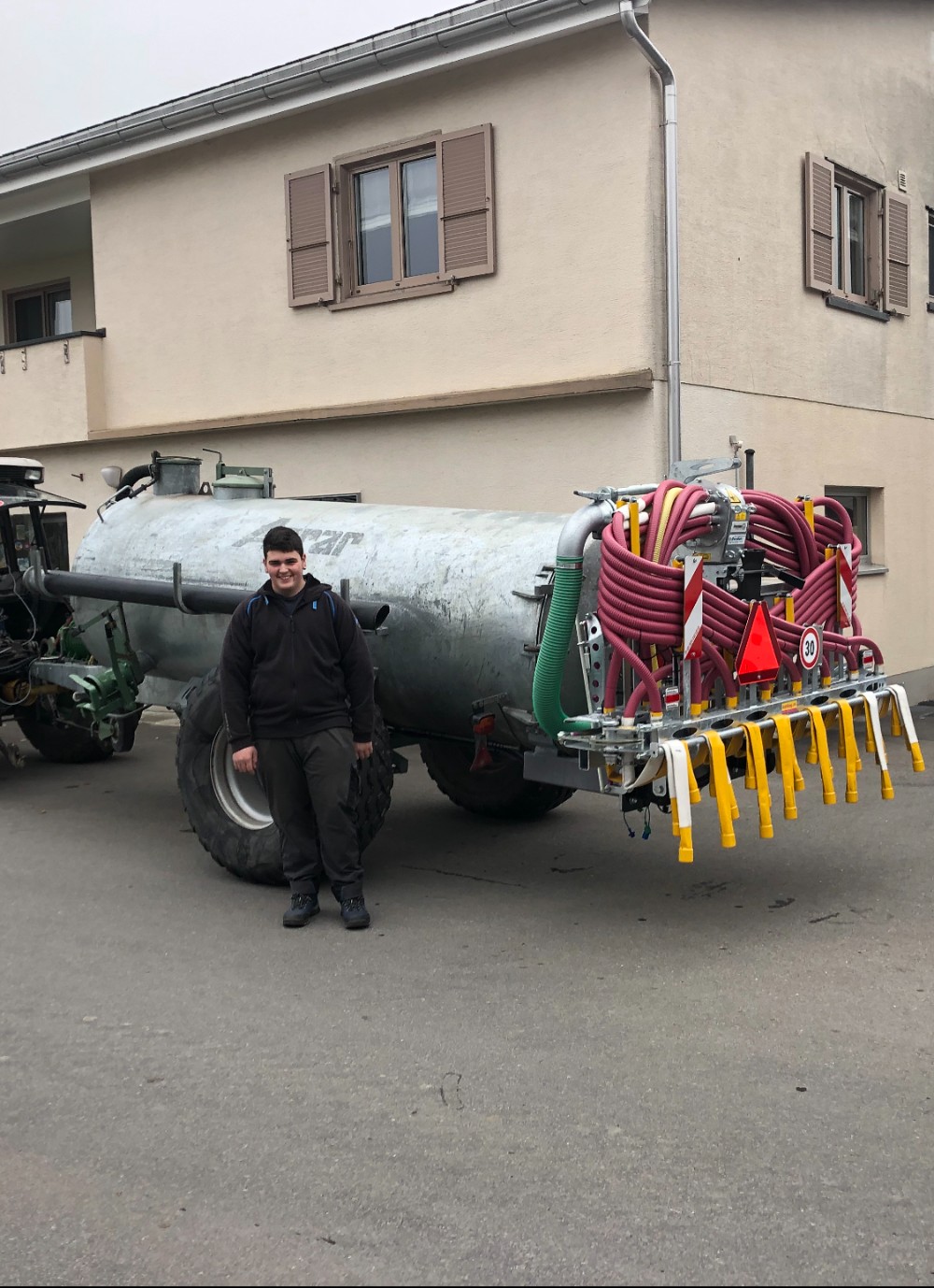 Fam. Luzia + Erich Gmür in Kaltbrunn : Occ. Agrar Druckfass 4700 lt. mit neuem Kohli Schleppschlauch.